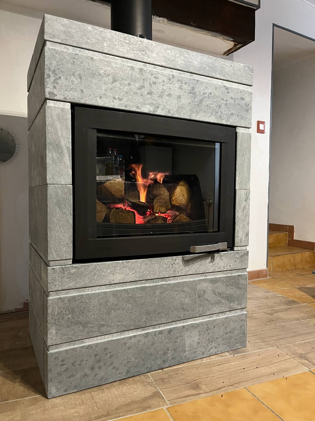 Installation poêle de masse à accumulation LORFLAM XP68 - Entreprise RGE Qualibois